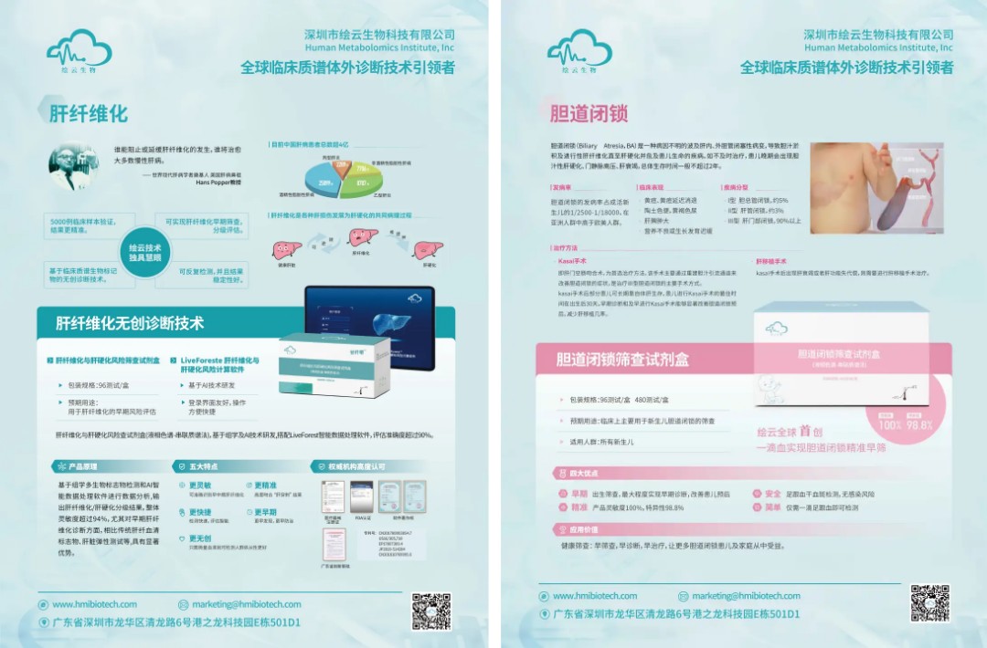 绘云生物产品矩阵中的另一大亮点是新生儿先天性胆道闭锁风险筛查试剂盒:采集新生儿足跟血干血斑进行出生筛查,已有研究验证其灵敏度达100%,特异度大于98.8%,展现了绘云生物创新精准诊断技术在疾病极早期干预中的巨大价值。