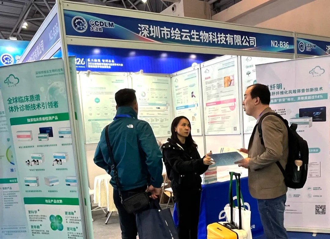 在CACLP、CCDLM展会上,绘云生物展台成为与业内人士深度交流的“技术会客厅”。观众可了解绘云生物基于质谱代谢组学与AI技术的疾病风险筛查试剂盒、AI辅助诊断软件等硬核产品如何推动慢性肝病、新生儿先天性疾病、糖尿病、阿尔茨海默病等神经退行性疾病及结直肠癌等肿瘤的早期筛查与精准诊断。