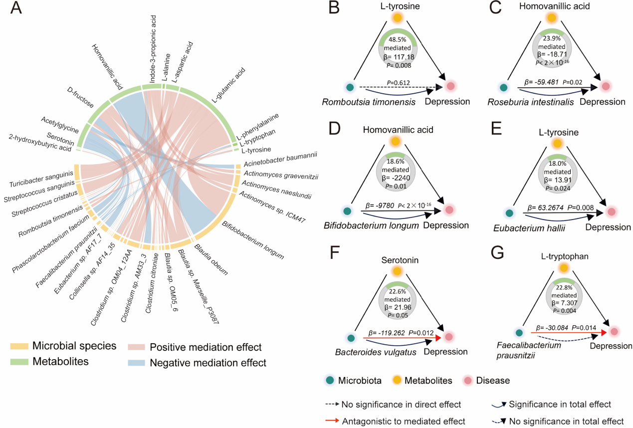 (图5. 肠菌-代谢物-抑郁症的中介分析)
